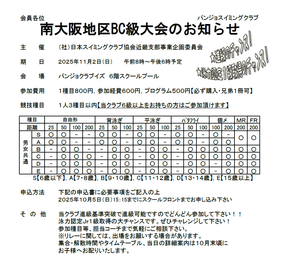 ・又記録が当クラブの進級標準タイムを上回った場合には